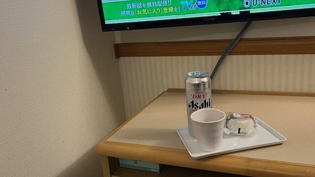 コンビニで調達し1人部屋飲食です。